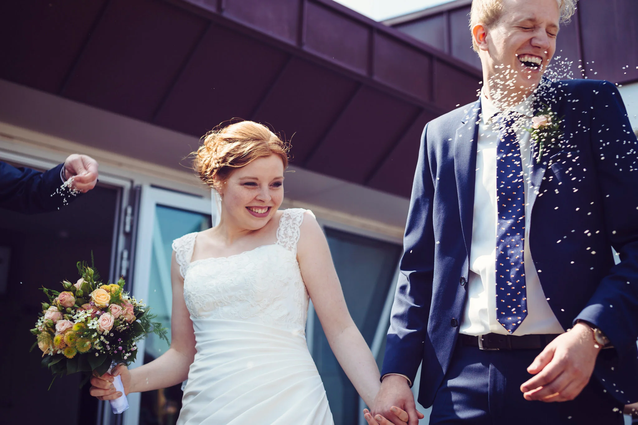Dog tager det stort set altid en time, når der både skal krammes og ønskes tillykke af 70 gæster, samt kastes med ris. Derfor sætter jeg altid en time af i tidsplanen til det kirkelige.
